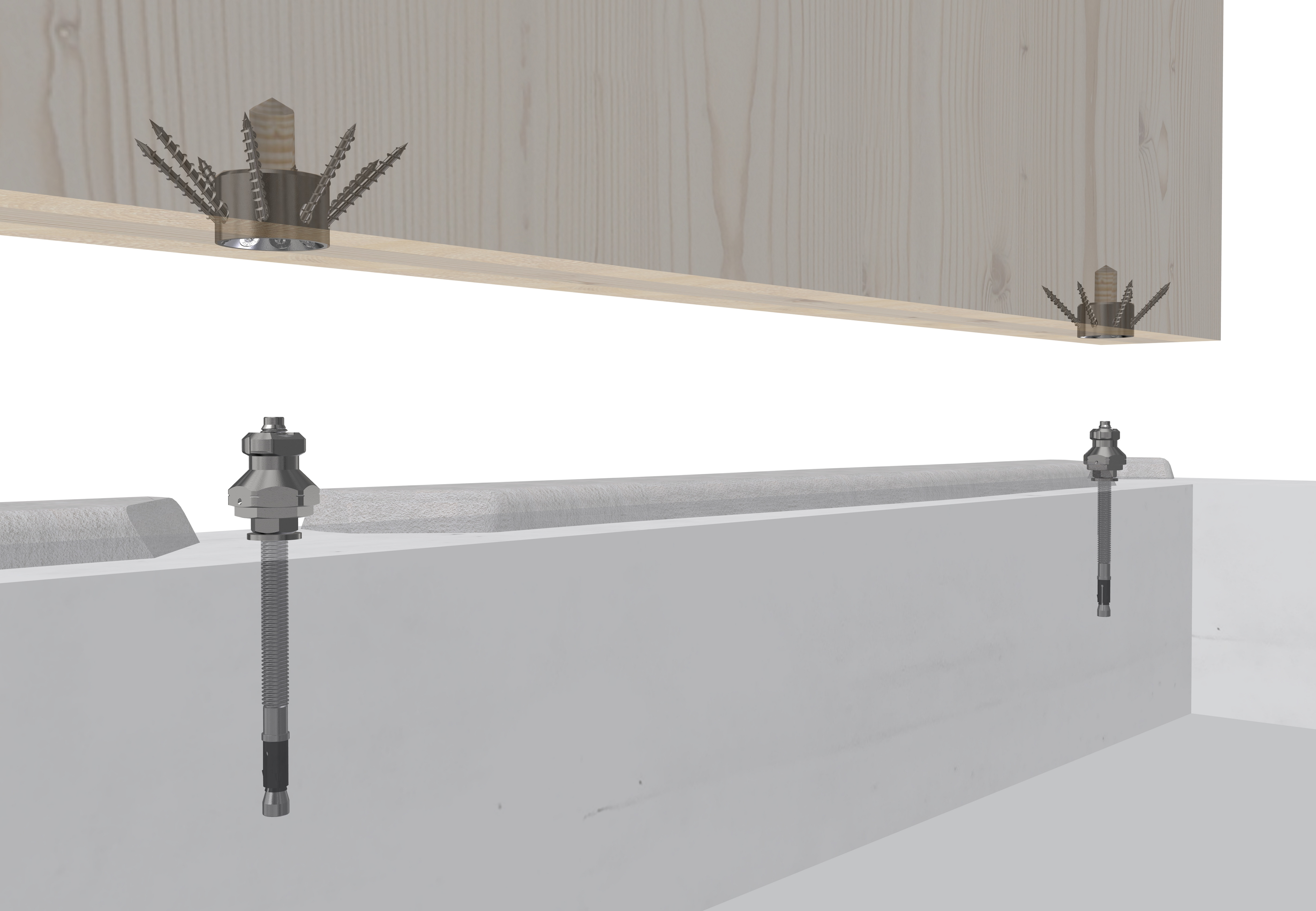 Wand-Boden-Verbindungen sind hohen statischen Anforderungen ausgesetzt und müssen Kräfte zuverlässig in den Untergrund ableiten. Modulix erfüllt diese Anforderungen durch eine spielfreie, mechanisch gesicherte Verriegelung mit nur 90° Drehung. Die dreidimensionale Verschraubung nach dem bewährten IdeFix-Prinzip ermöglicht die Übertragung von Zug- und Scherkräften und sorgt gleichzeitig für eine zusätzliche Querzugsverstärkung des Holzes. Auch auf schmalen Betonsockeln, bei denen klassische Winkelverbinder erschwert einsetzbar sind, gewährleistet Modulix eine sichere und dauerhafte Verbindung.